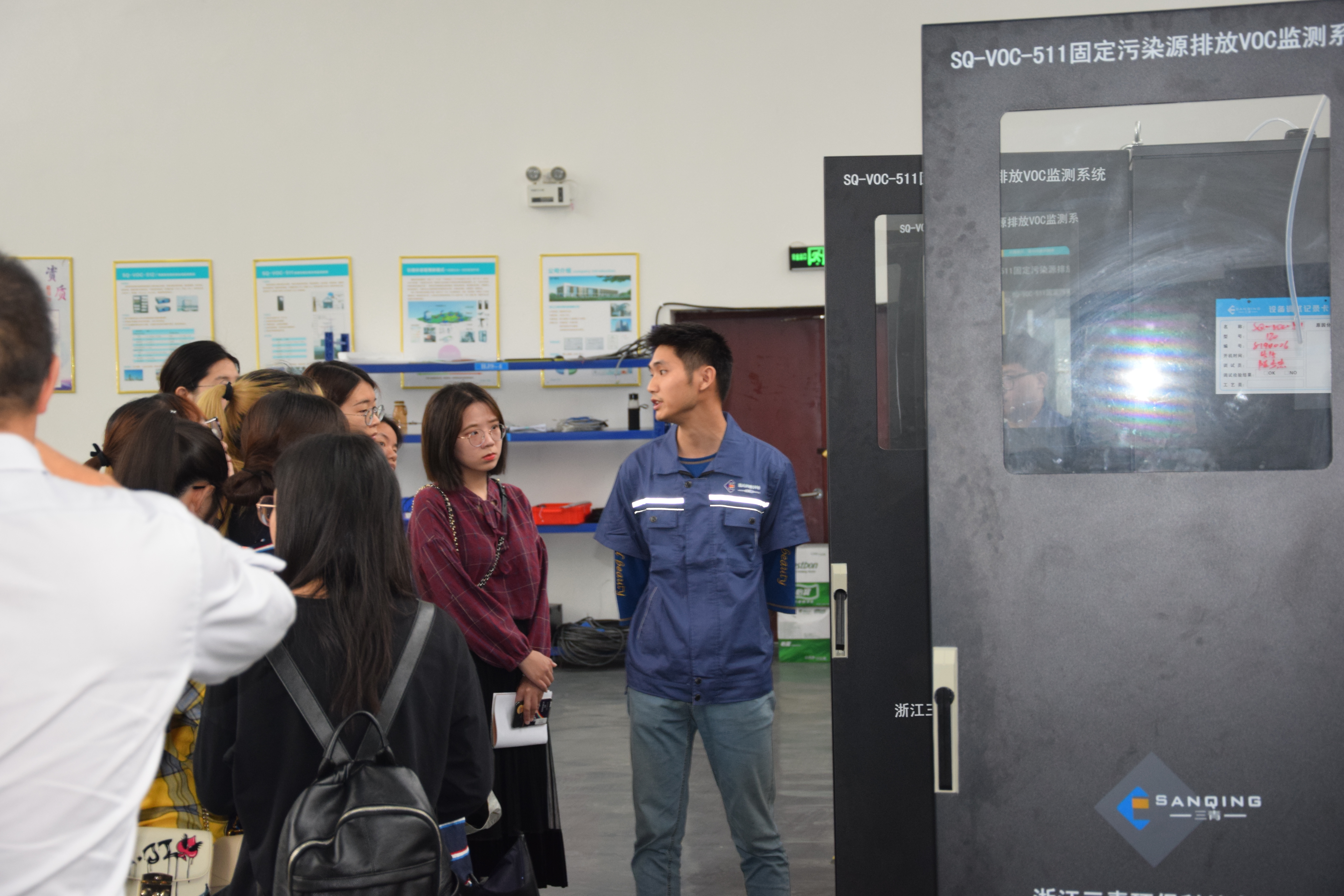 鮑工在展廳向師生介紹公司產品。