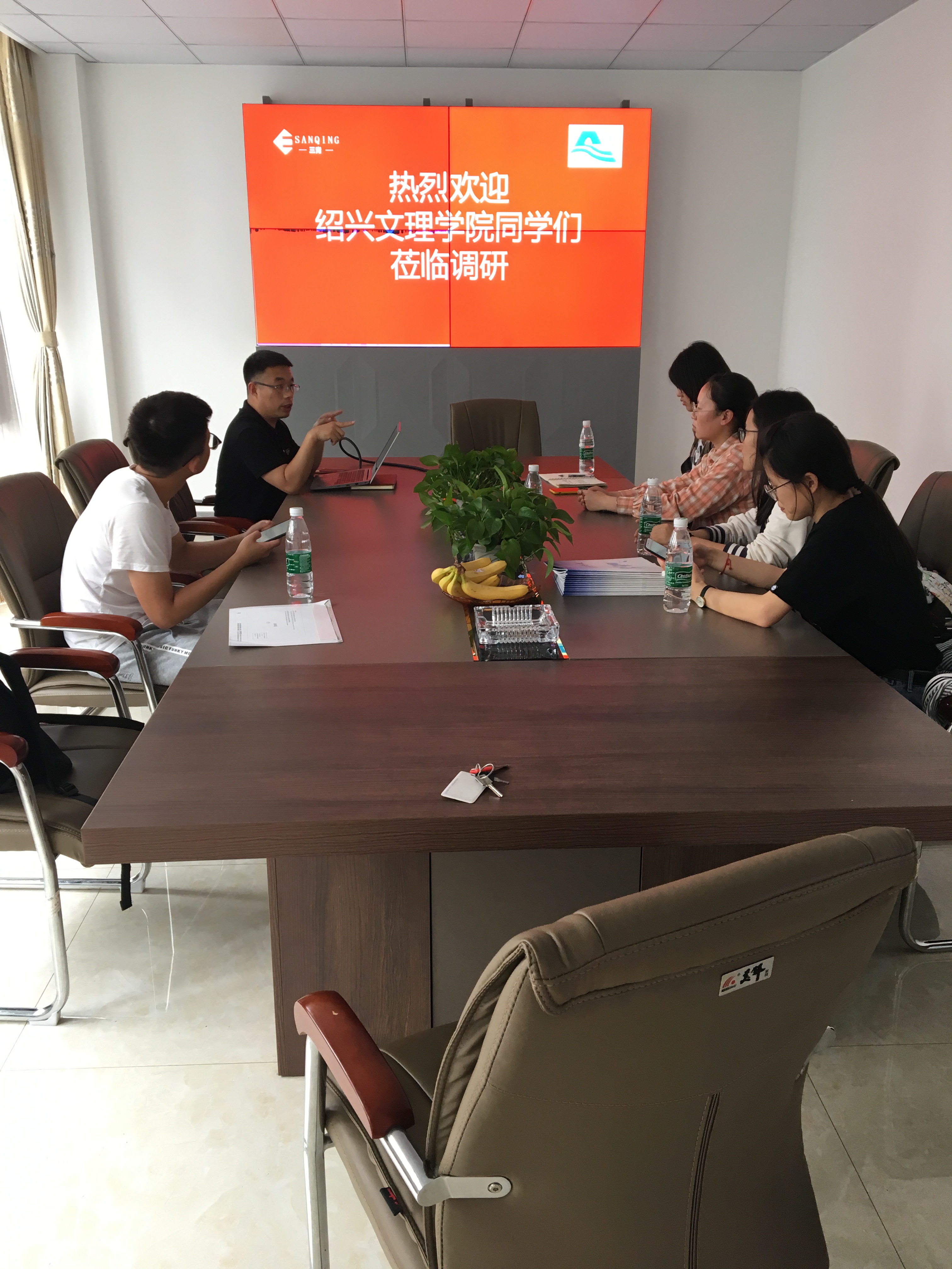 余總和黃總向師生介紹環保行業與公司概況。